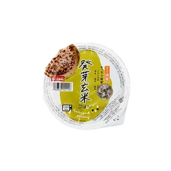 発芽玄米ごはん:うるち玄米、もち玄米に加え、栄養価の高い発芽古代米をブレンドしました。もち性の品種を配合することでもっちり食感に仕上げました。