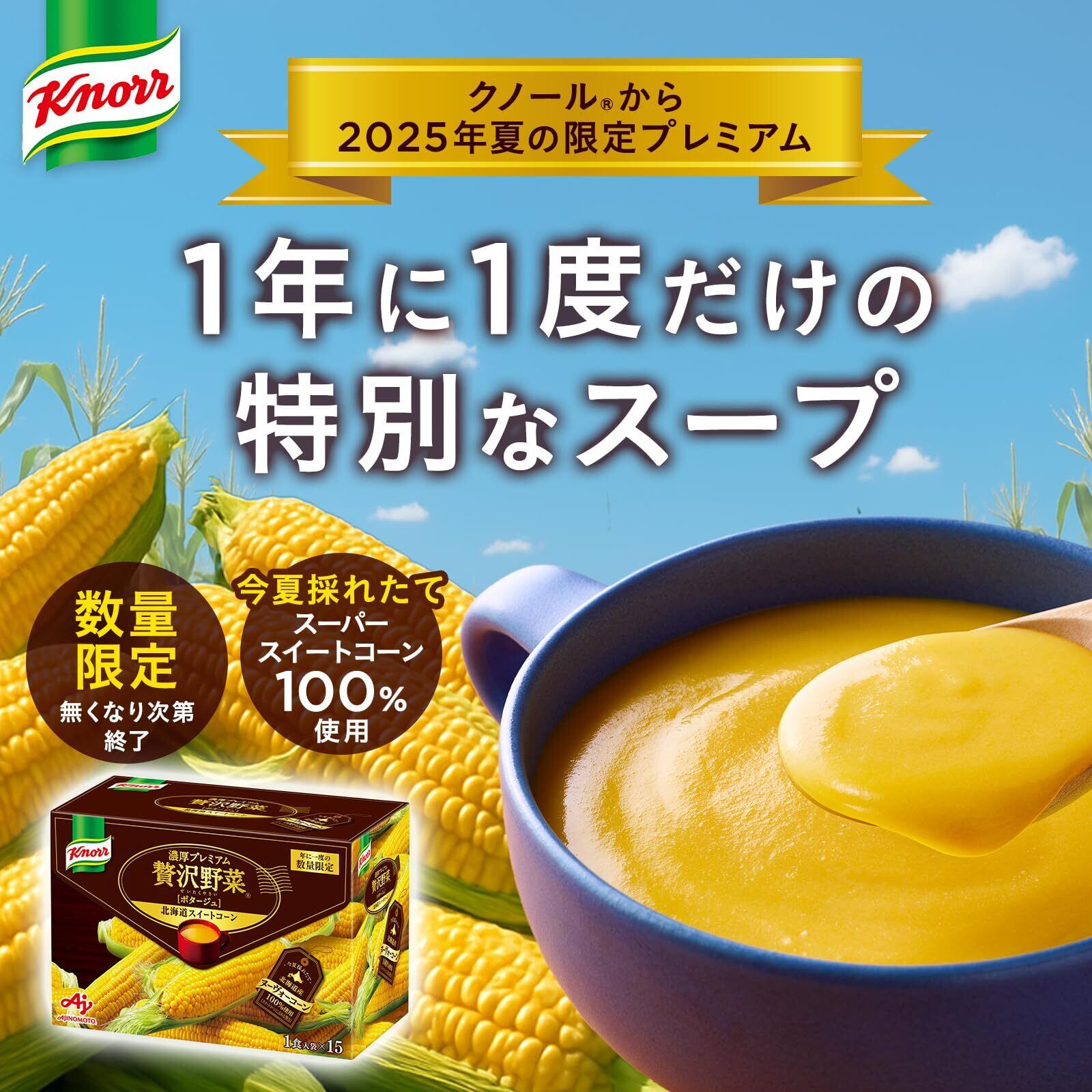 2025年 クノール 贅沢野菜 コーンスープ 今夏採れたて ヌーヴォーコーン 15袋入箱 味の素 カップスープ スープ