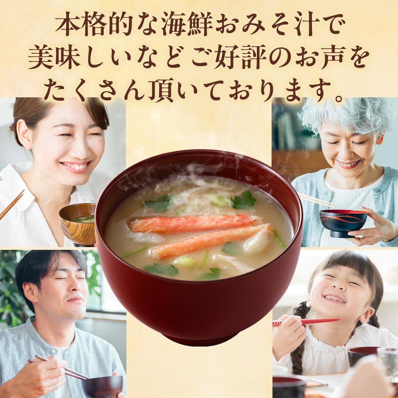 【素材のこだわり】海鮮おみそ汁は素材にもこだわりました。「紅ずわいがに」は、冷水塊と暖流域との境界部にあたる有数の好漁場で漁獲。水揚げした原料は市場を通さずに直接向上に運び、新鮮なうちに人の手で丁寧に加工して美味しさをいかしてます。旨みたっぷりの海鮮おみそ汁をお楽しみください。