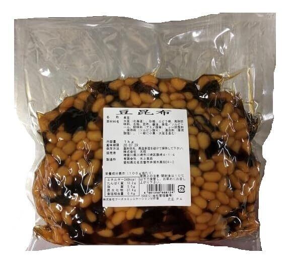 北海道産の大豆と、同じく北海道産の昆布をそれぞれに炊いて混ぜあわせました。甘じょっぱい味付けに仕上げてます。弁当の小付けなどにオススメの商品です。開封後はそのままご使用頂けます。枝豆と豆昆布を合わせて混ぜご飯にアレンジ可能です。人参を入れて彩りを出しても良いです。