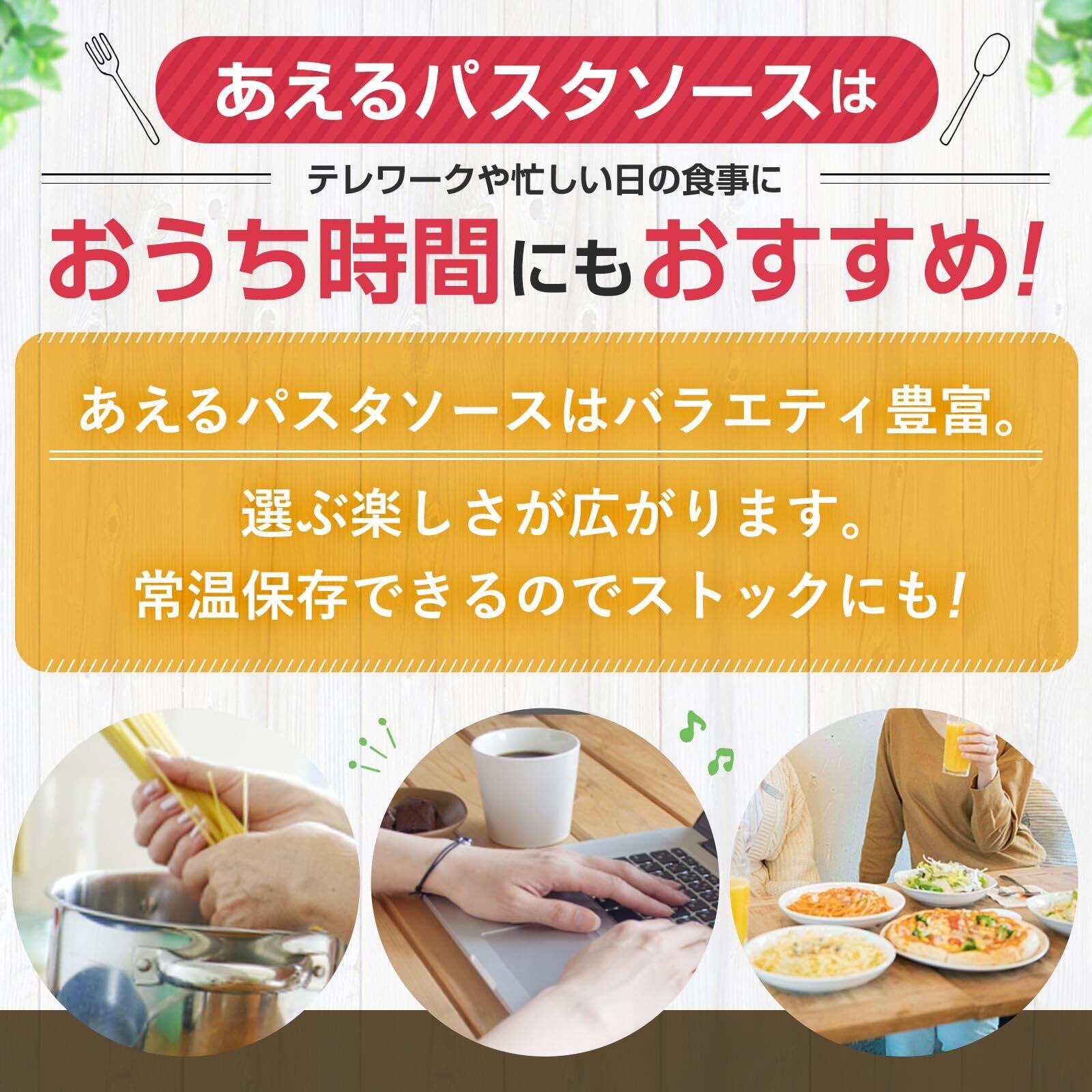 お子様から大人まで、家族みんながそれぞれ好みの味わいを選んで楽しめる「あえるパスタソース」シリーズです。