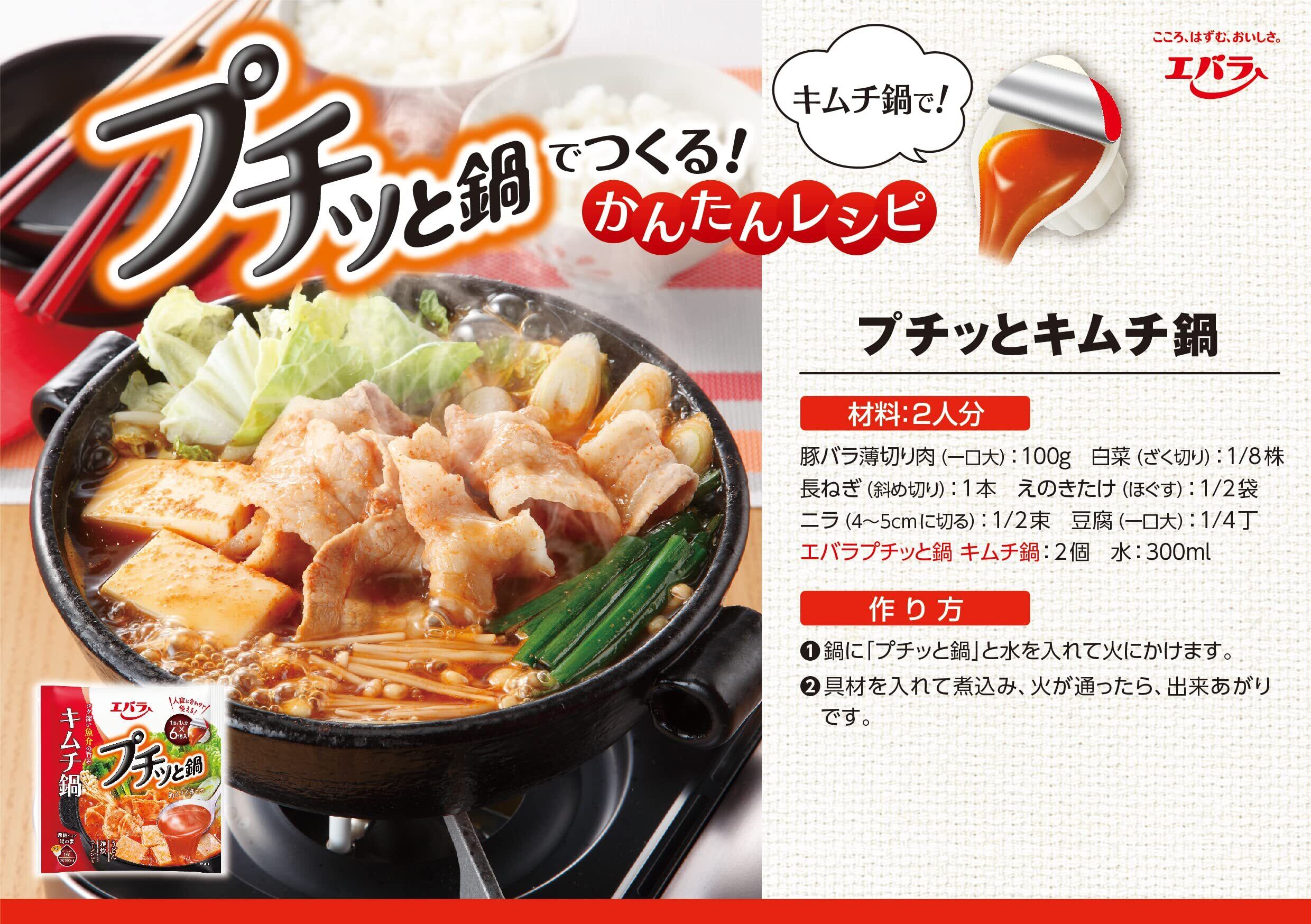 【一人前の味付けが簡単】プチっと鍋の特徴は少量でも鍋が作れること!一プチっとで一人前の味付けが簡単に決まるからお手軽時短で一人鍋!二人前以上の味付けも調節しやすいので人数や好みに合わせてお楽しみいただける鍋の素です。例えば3人家族なら、3プチッと3人前。