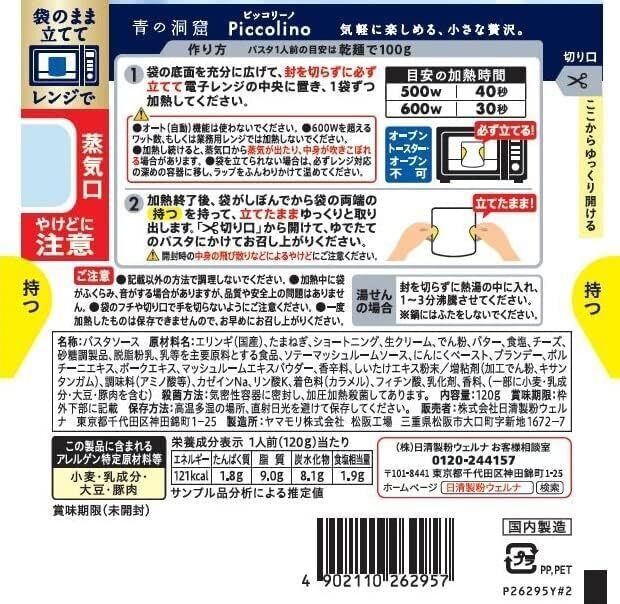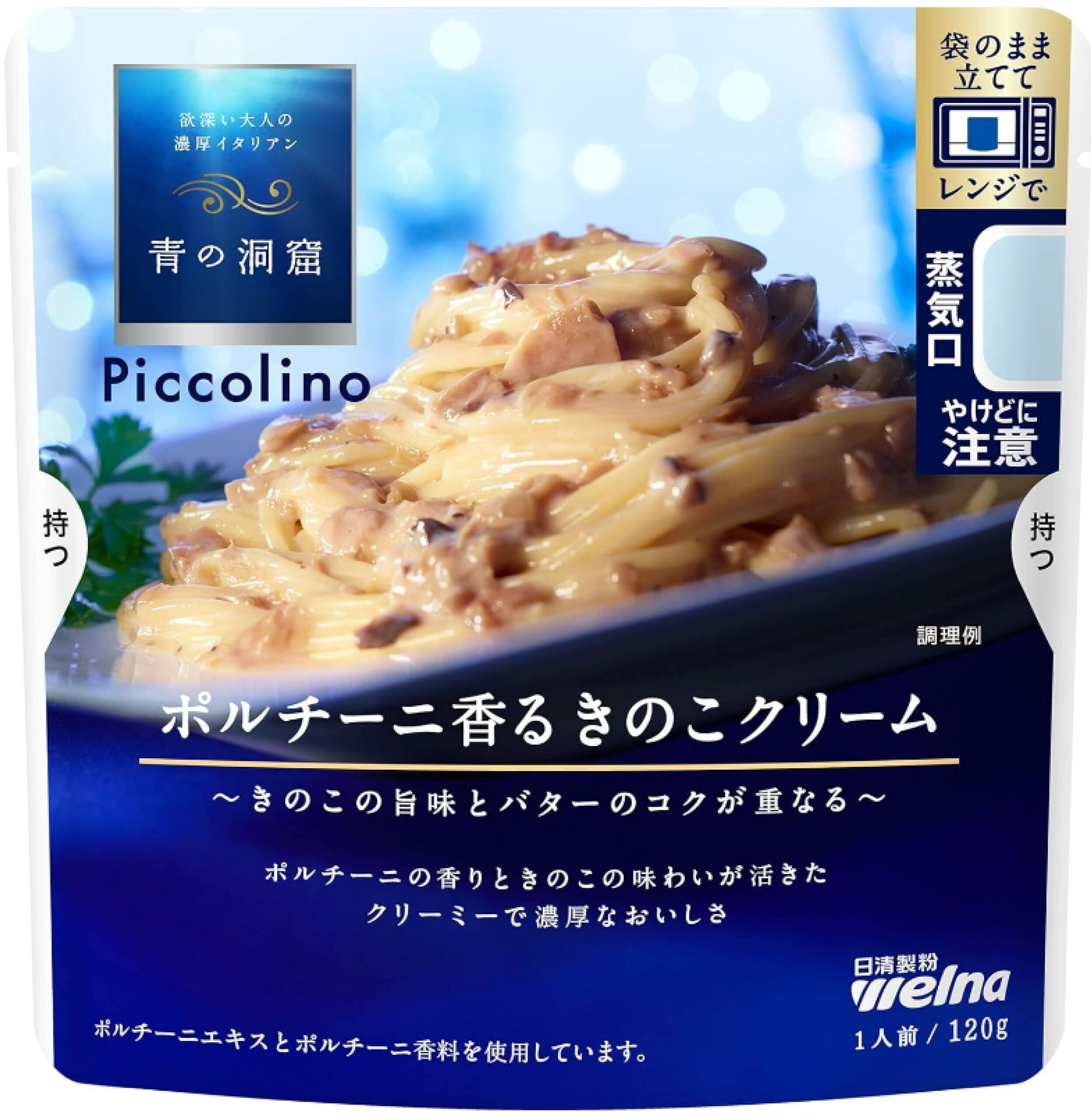 きのこの旨味とバターのコクが重なるポルチーニの香りときのこの味わいが活きたクリーミーで濃厚なおいしさ。青の洞窟ならではの“贅沢なおいしさ”はそのままに、電子レンジ調理可能に。