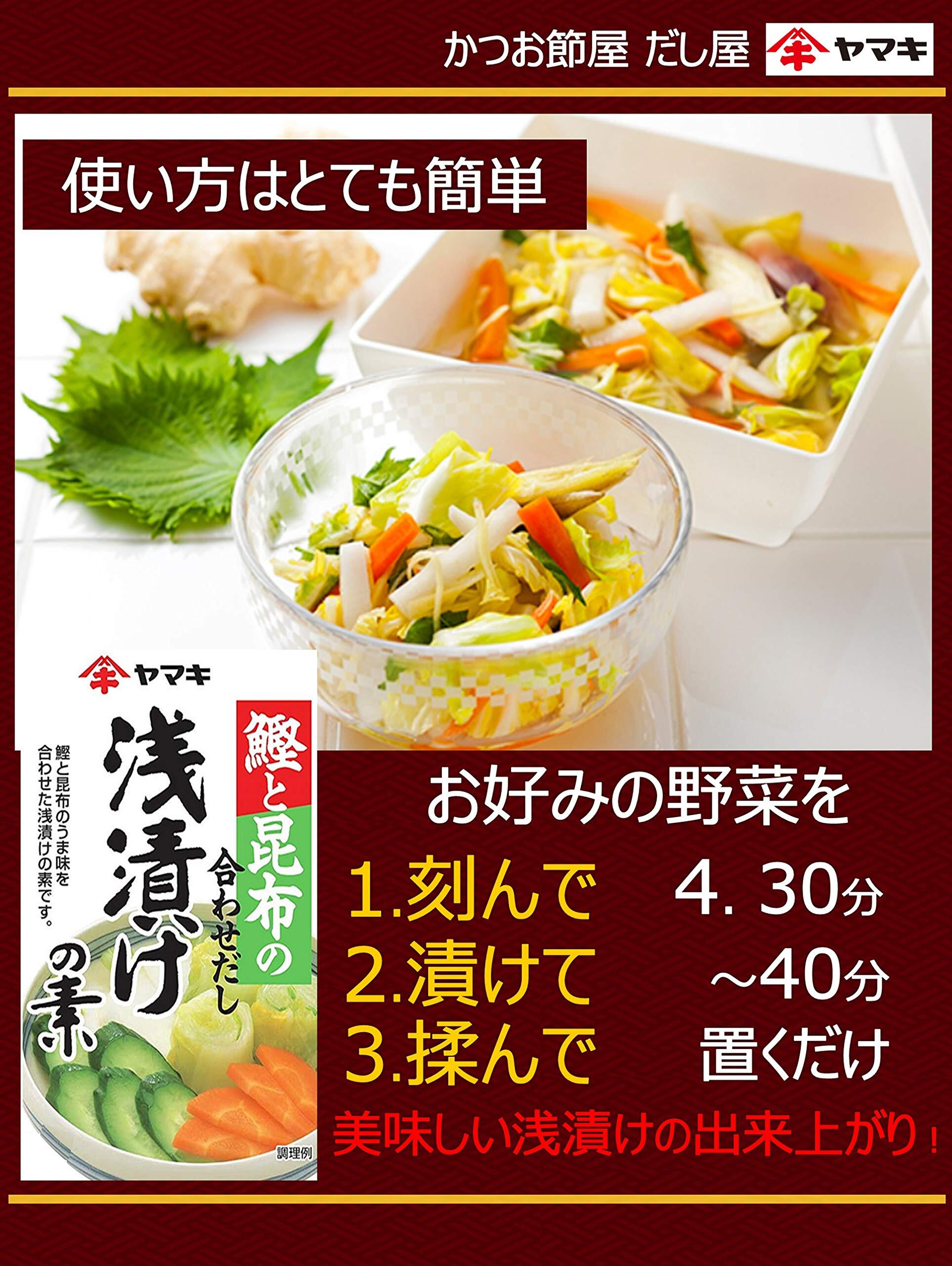 鰹と昆布のうま味を合わせたおだしのきいた浅漬けの素です。「きゅうり」や「なす」「はくさい」などお好みの野菜をきざんで漬けてもむだけで、さっぱりとしてうま味のある浅漬けがご家庭で手軽にお楽しみいただけます。浅漬けの他にも、そのままお好みの野菜にかけて和風ドレッシングとしてもお楽しみ頂けます。毎日の食卓にどうぞ。