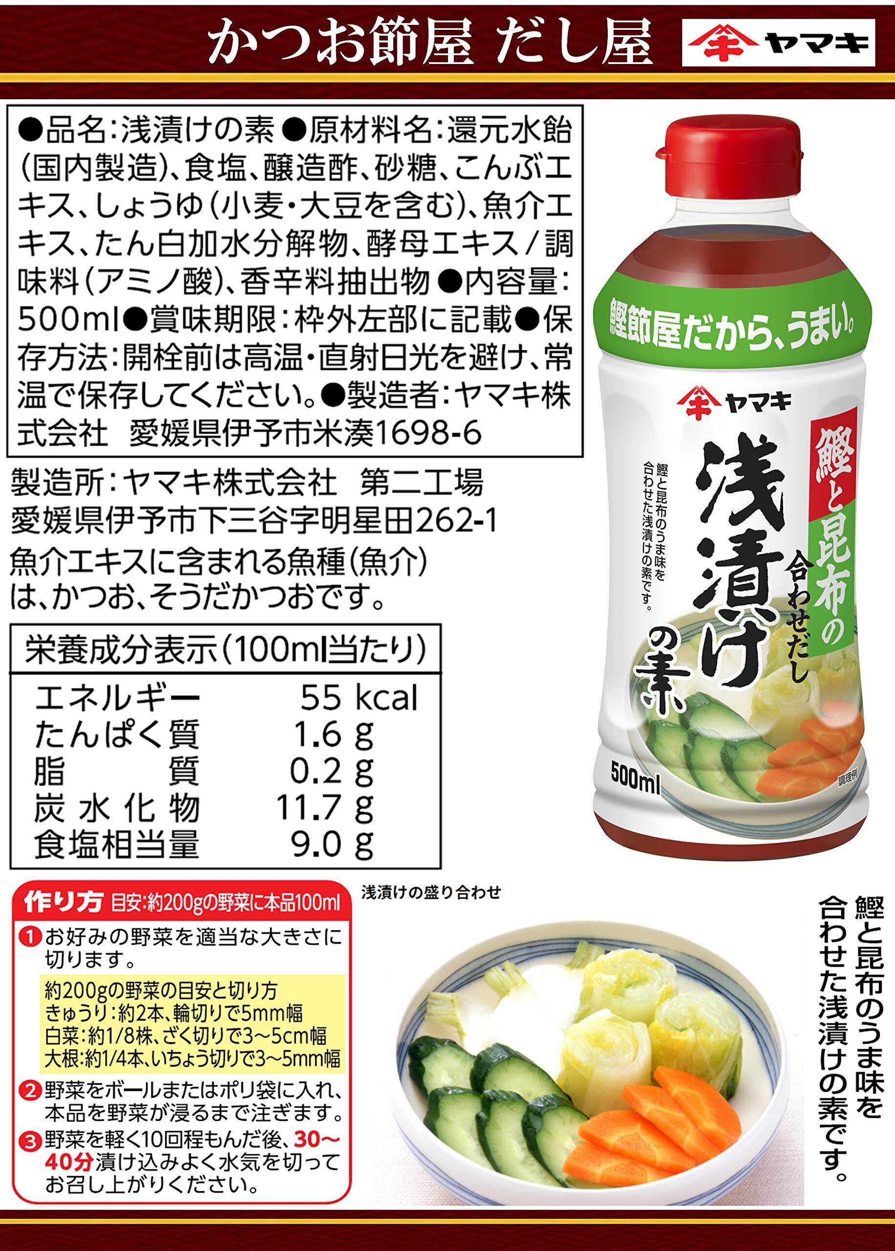 ヤマキ 浅漬けの素 鰹と昆布 500ml×4本