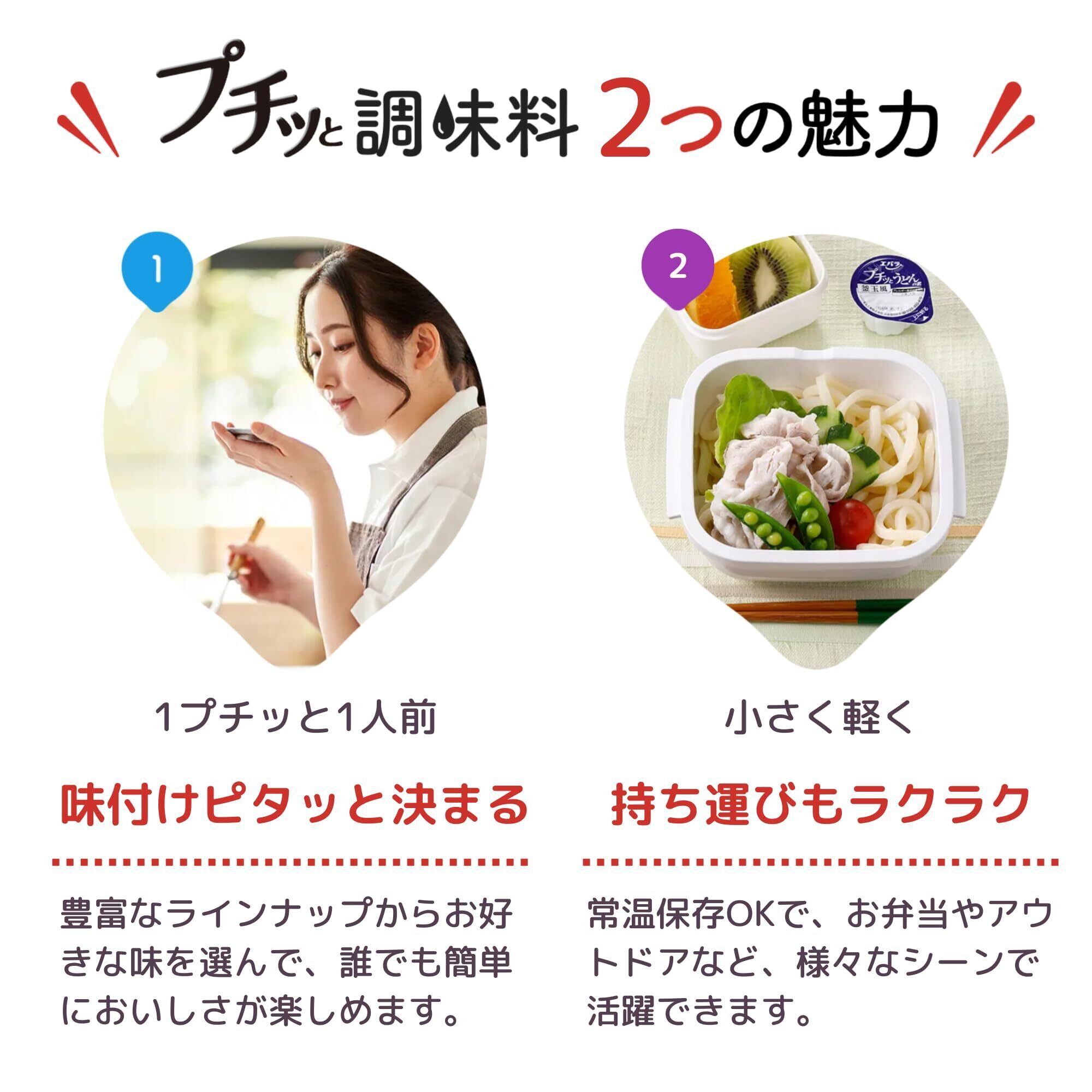 【あなたの料理にインパクトを!】本商品は、各種の調味料がそれぞれの特徴を持ち、ひとつひとつの料理に深い味わいをプラスすることができます。簡単に使えるプチッとタイプなので、さまざまな食材に絡めるだけで、手軽に本格的な料理が実現できます。家族や友人と一緒に、ワイワイ楽しみながら多彩なメニューをお楽しみください!