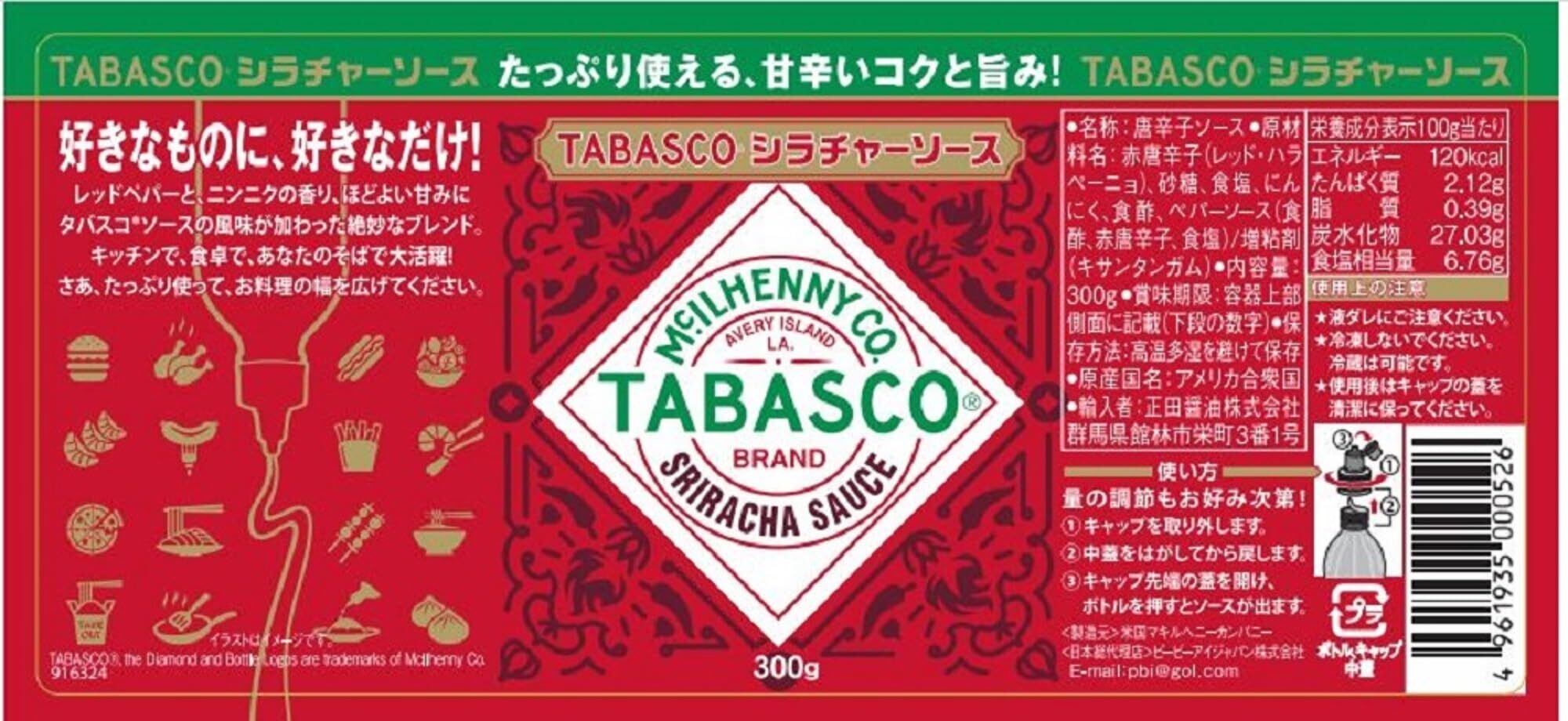 正田醤油 マキルヘニー タバスコシラチャーソース 300ml×2個