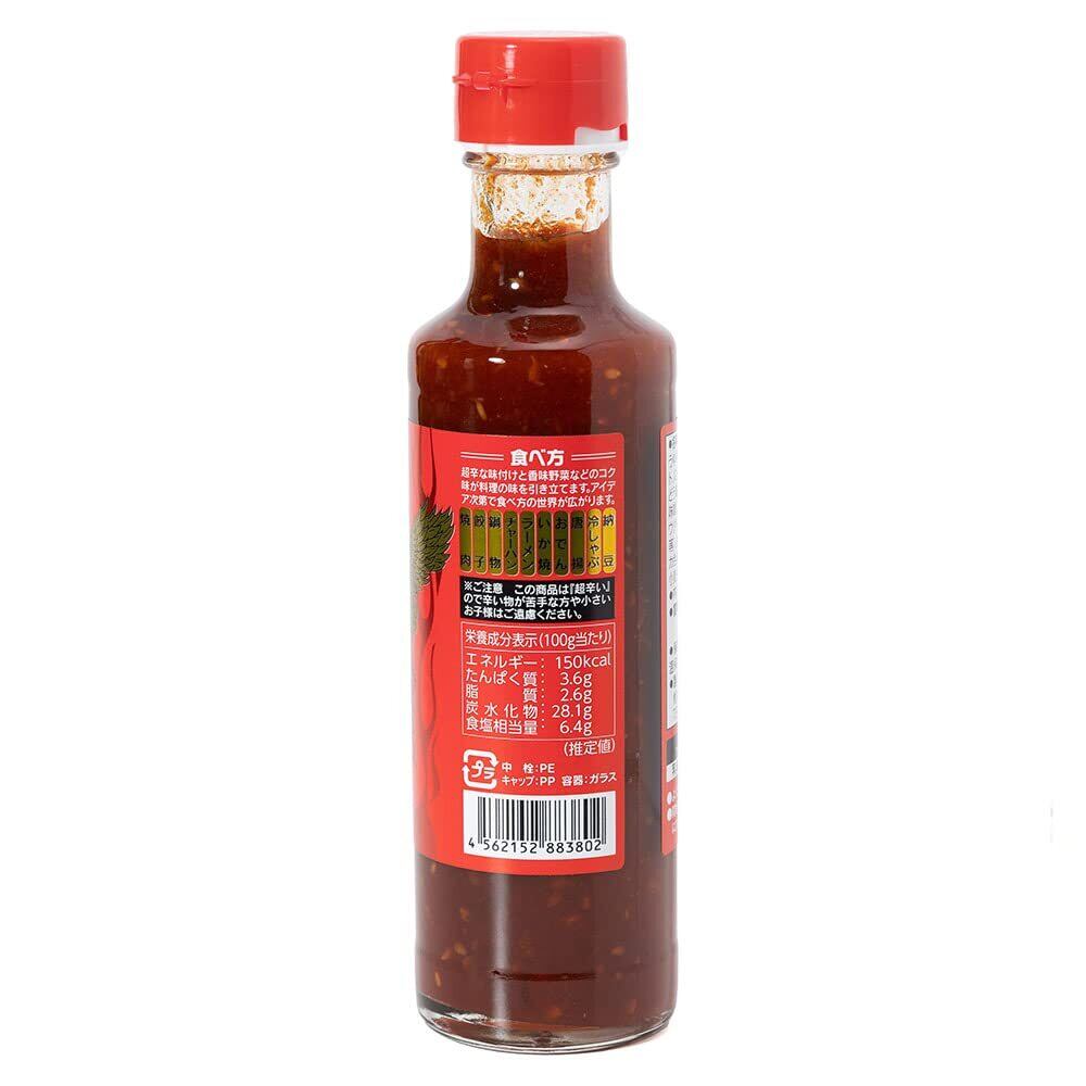 この激辛のたれは、超辛な味付けと香味野菜などのコク味が料理の味を引き立てるタレとなっています。焼肉のつけダレはもちろんですが、チャーハンやめん類、エスニック料理などさまざまな料理に一振りかけて、その辛さをお楽しみ下さい。あなたのアイデア次第で食べ方の世界が広がります。