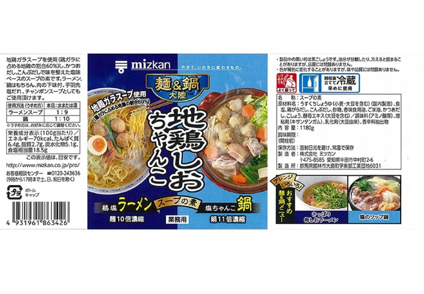 ミツカン 麺&鍋大陸 地鶏しおちゃんこスープの素 1180g 鍋の素 ラーメンスープ