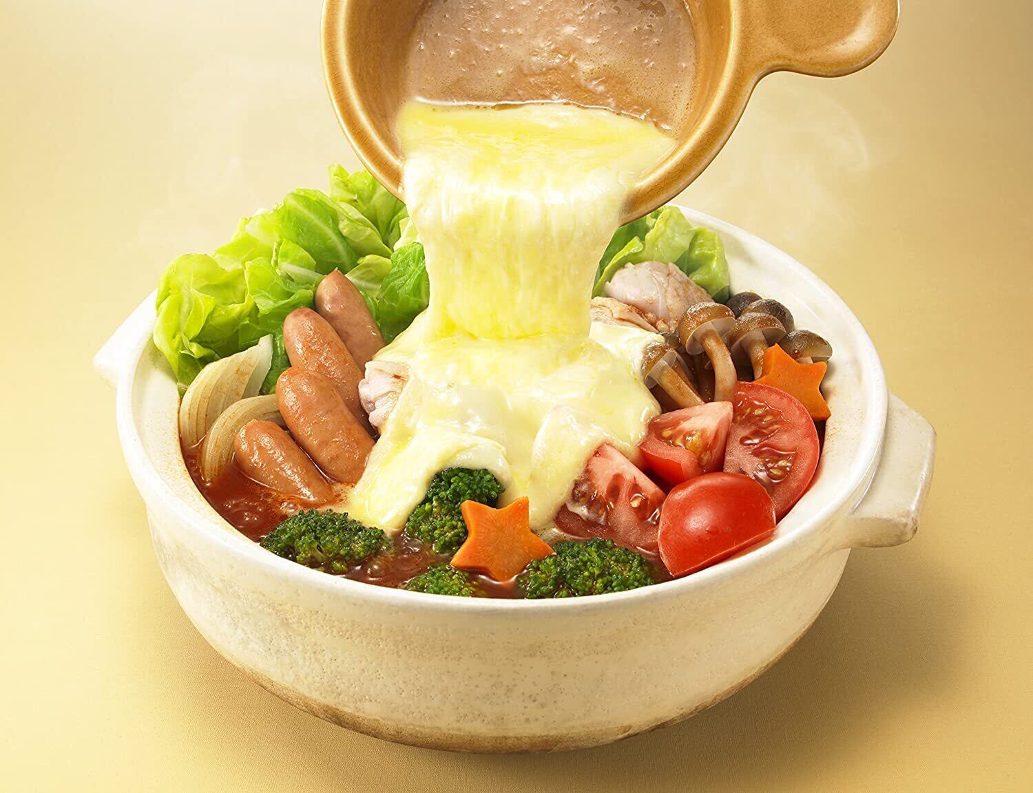 家族みんなで野菜がおいしく食べられるカゴメ特製の鍋用スープです。 完熟トマトをベースに、チーズと魚介だしで、キャベツやソーセージがおいしく食べられる、甘みとコクが特徴のスープです。 野菜ブイヨンや3種のチーズ(ゴーダ、チェダー、パルメザン)をアクセントに、まろやかな甘みとコクが特徴の濃厚スープです。 野菜の旨みがとけこんだスープを食べつくしてください。鍋の最後は、ご飯と卵で驚きのオムライス!