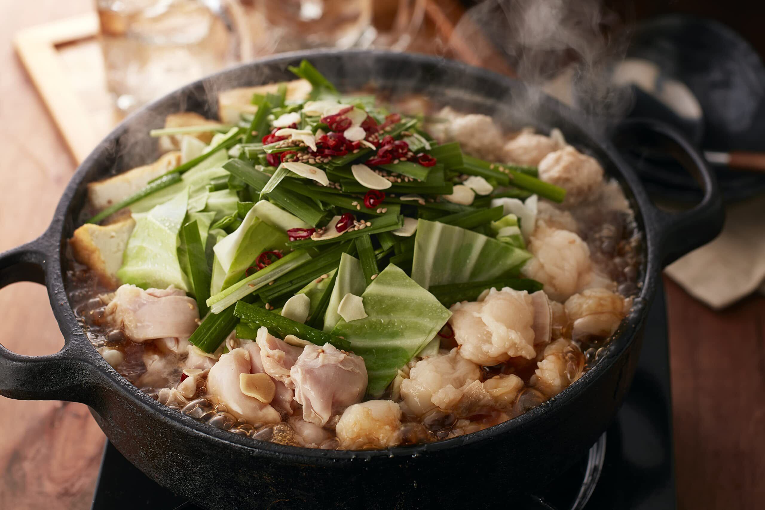 もつの旨みを引き立てる料亭「博多華味鳥」オリジナルの醤油味のスープで博多名物のもつ鍋をお楽しみください。
