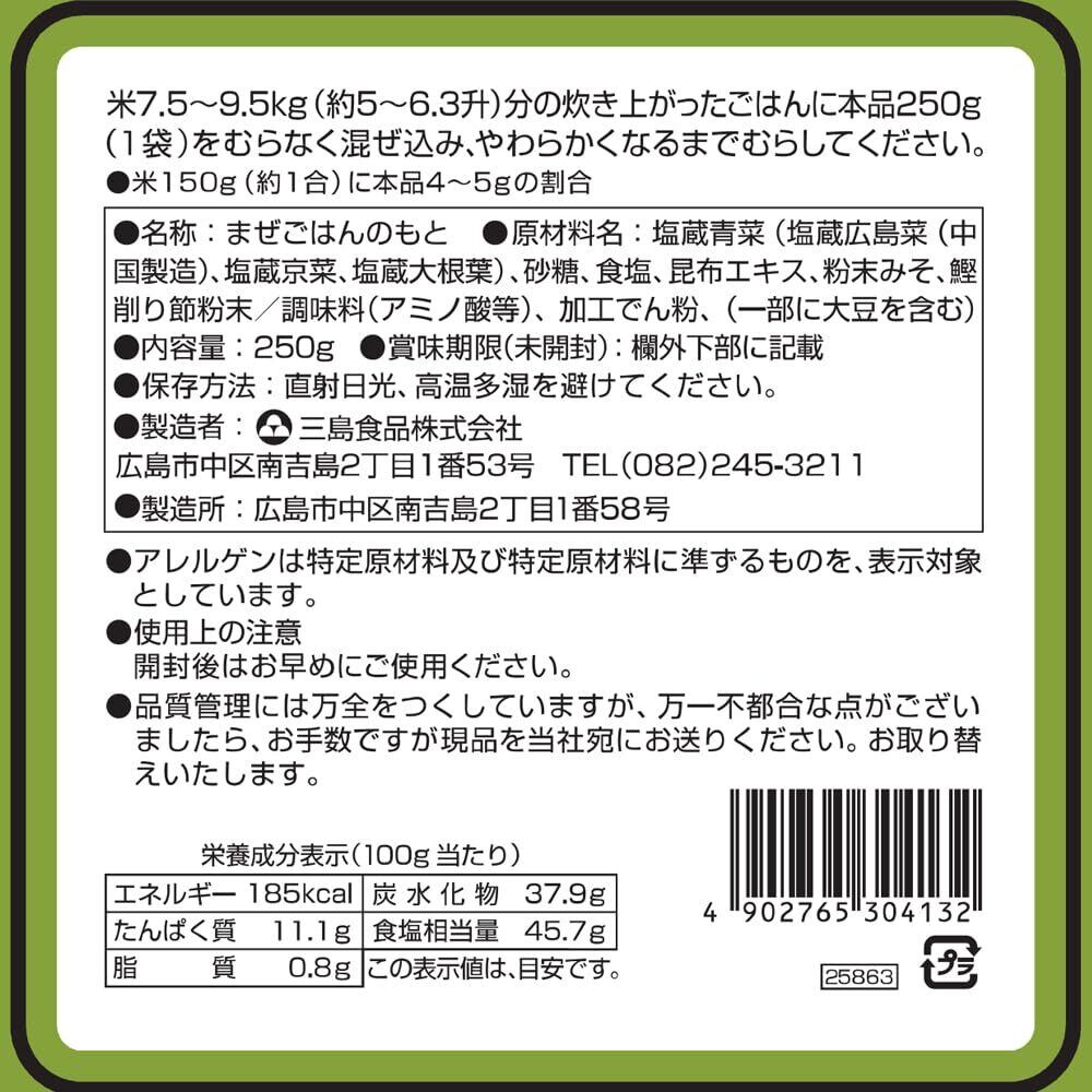 青菜の風味と色合いを生かした混ぜごはんの素です。広島県特産の広島菜に、京菜と大根葉をブレンドしています。