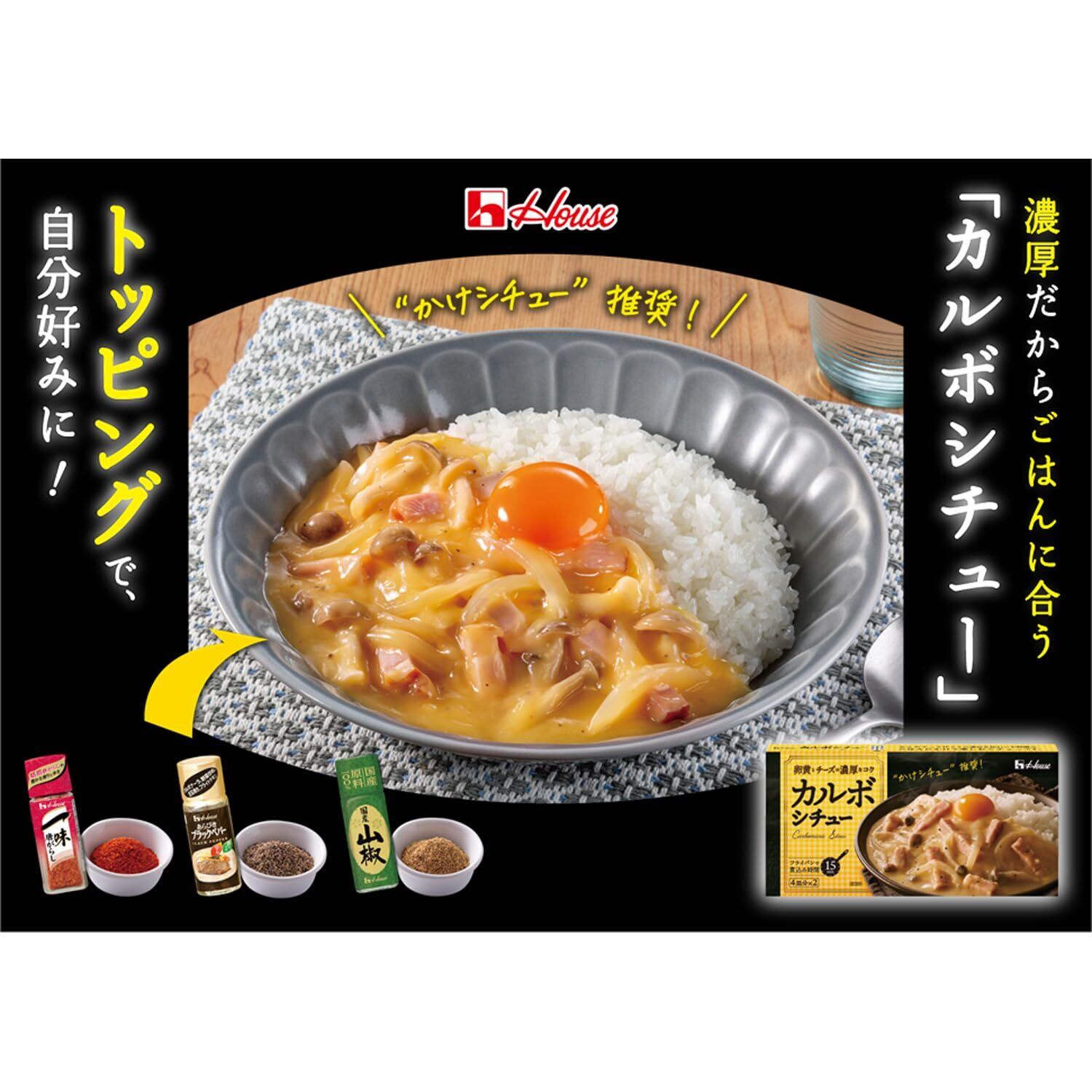 カルボナーラ仕立ての濃厚な味わいが特徴のシチューがフライパンで煮込み時間15分で作れるので、ごはんにかけて満足できる新しいシチューを手軽に楽しめます。