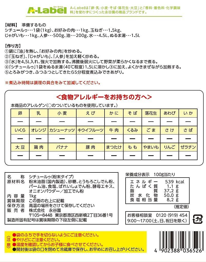 「卵・乳・小麦・そば・落花生・大豆」、「香料・着色料」、「化学調味料」を使わずにつくった商品ブランド「A-Label」の業務用シチュールゥです。