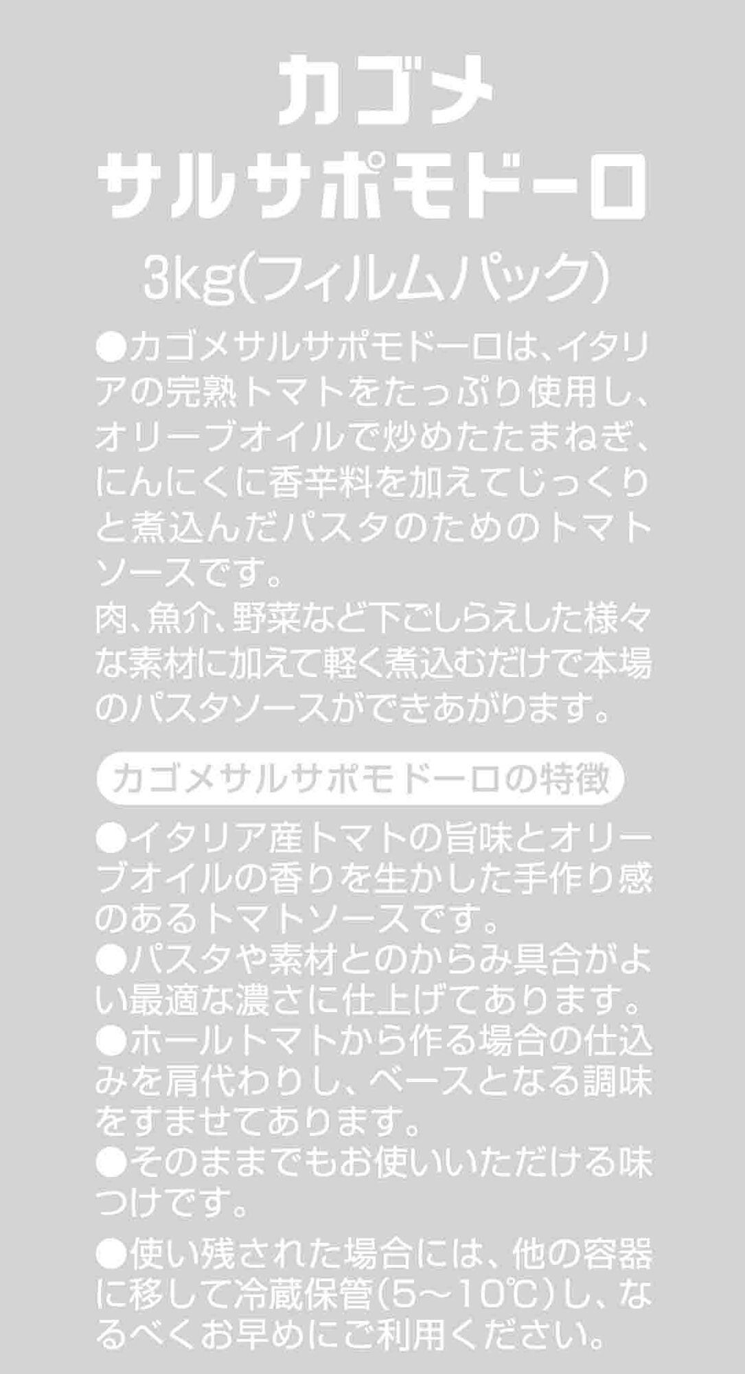 カゴメ サルサポモドーロ フィルムパック 3kg 3000g 業務用 大容量 レストラン用
