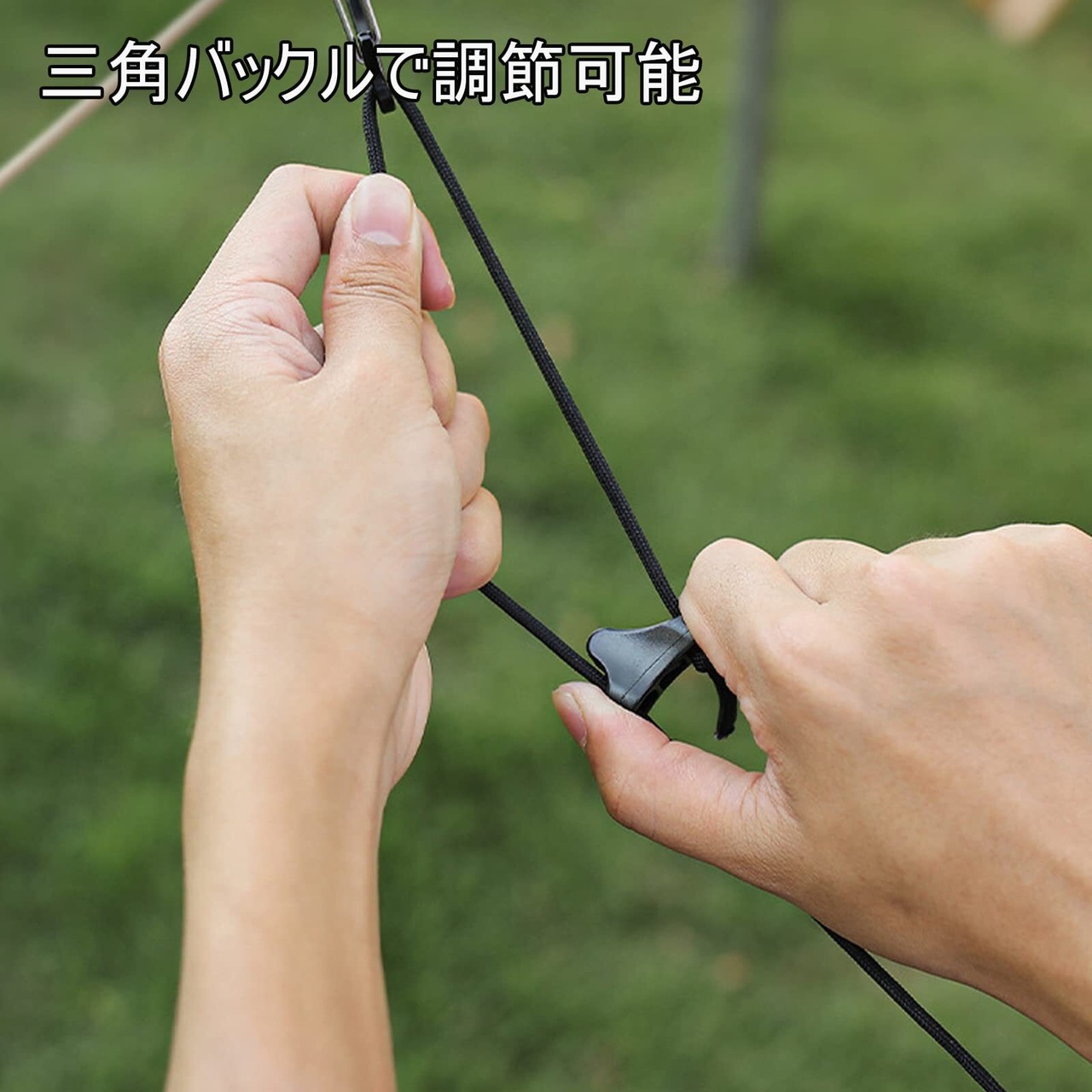 デイジーチェーンは折れにくい高品質の600Dナイロン製で、耐候性・耐水性に優れています。 アウトドアに最適な素材です。固定フックで風が吹いても滑らないオシャレなロープです。また、ロープ両側に長さを調節できるアジャスターがついて、最長500cmまで調節可能です。