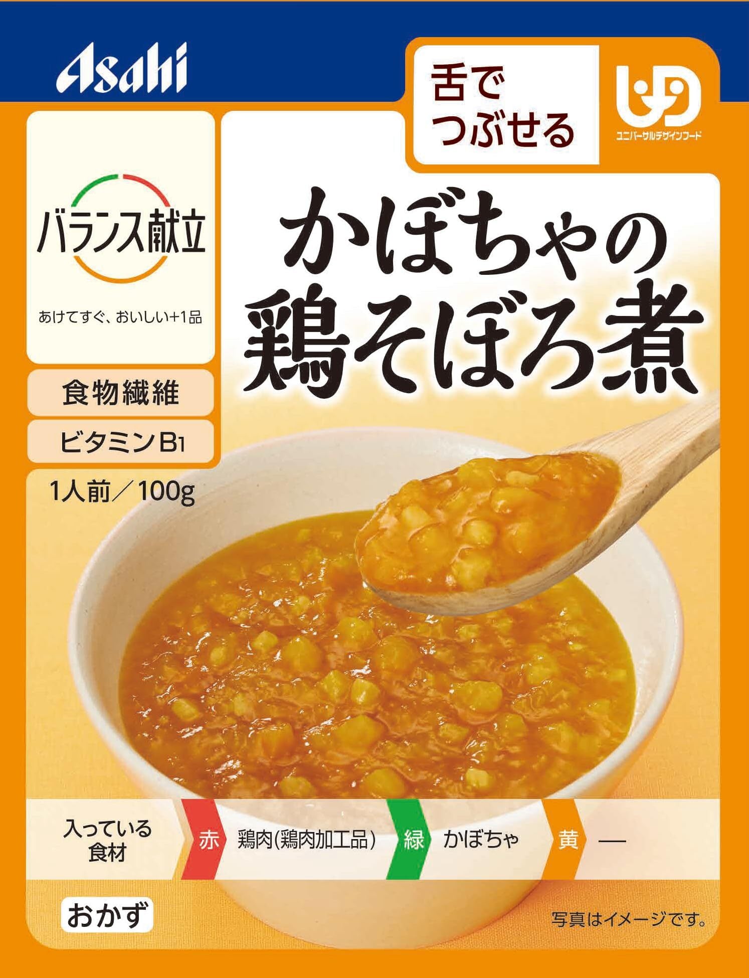 【やわらかいかぼちゃの鶏そぼろ煮を手軽に楽しめる!】「バランス献立 かぼちゃの鶏そぼろ煮」は、咀嚼が難しい方にも嬉しい、やわらかく仕上げたおかずです。舌でつぶせる食感に調整されており、どなたでも安心して美味しくお召し上がりいただけます。
