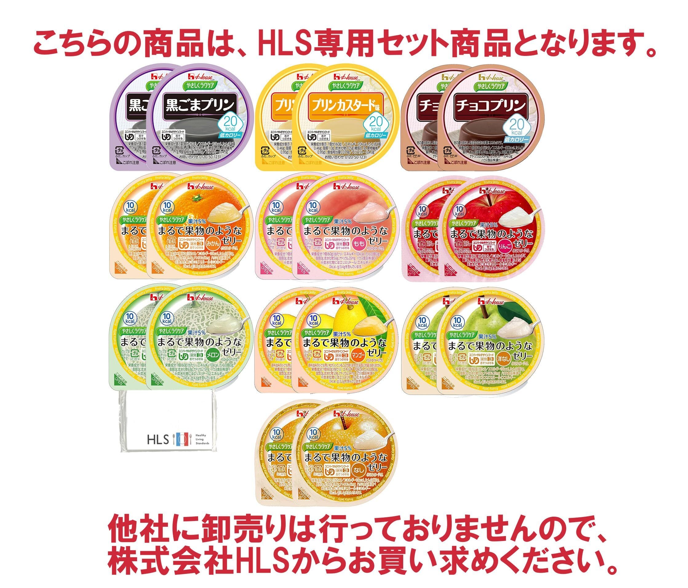 【HLS】 ハウス食品 やさしくラクケア 10種×各2個 (計20個) (まるで果物のようなゼリー 7種 + 低カロリープリン 3種) アソートセット 舌でつぶせる ダンボール詰め HLSオリジナルポケットティッシュ付 | BASE SHOP
